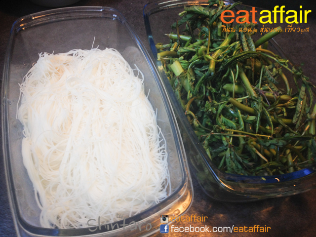 เริ่มต้นด้วย ส่วนผสมครับ ทำหมี่ผัดกระเฉกกุ้ง ก็ต้องมีหมี่ และผักกระเฉดครับ เส้นหมีขาว แช่น้ำให้นิ่ม แล้วสะเด็ดน้ำ พักไว้ ผักกระเฉดครับ ใช้ยอดอ่อน เด็ดเอายอด อ่อนๆ และลำต้น ล้างน้ำให้สะอาด