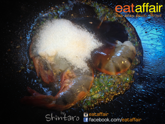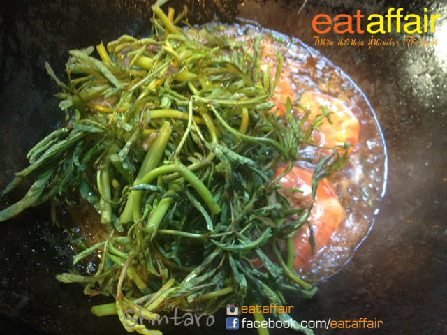 ใส่เครื่องปรุง น้ำมันหอย น้ำตาลทราย น้ำพริกเผา