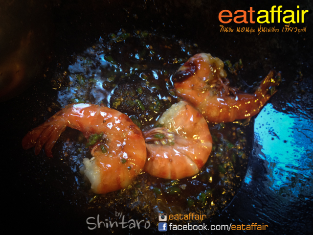 กุ้งครับ ใช้กุ้งอะไรก็ได้ ผมเลือกใช้กุ้งลายเสือครับ ตัวโตๆ ตัดหัวออก หากไม่ชอบกุ้งก็เปลี่ยนเป็นหมูหมัก หมูกรอบ ปลาหมึกกรอบ หรืออะไรก็แล้วแต่ ตามใจชอบครับ