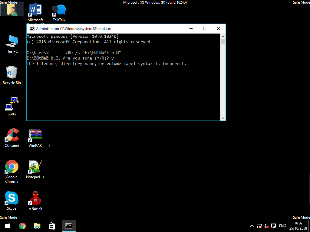 รูปที่ 2 : ลองใช้ CMD ช่วยในการลบ Folder แต่ก็ลบไม่ได้