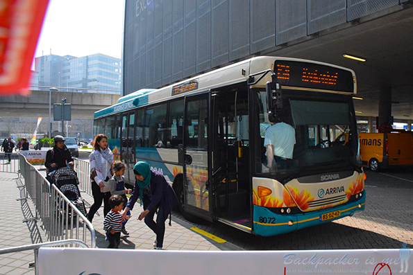 ตรงประตูทางออกมีรถบัสจอดรอครับ ขึ้นไปนั่งได้เลย