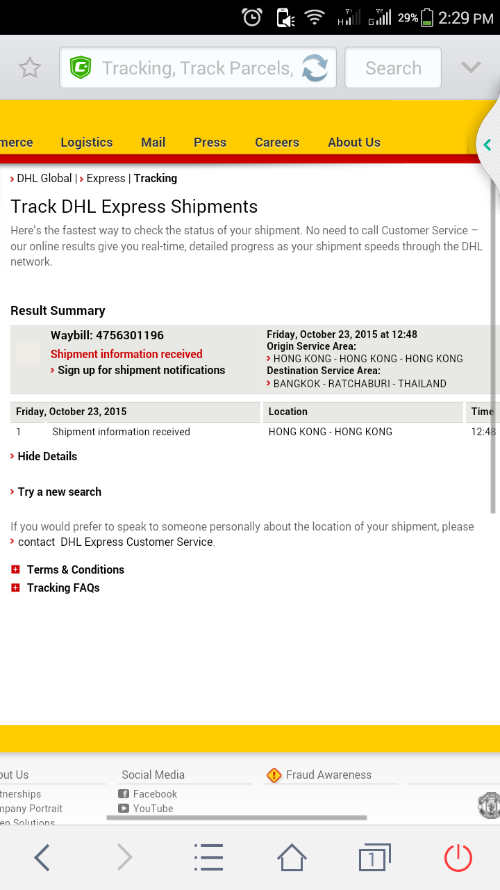 เอาเลขมาให้เราเช็คเฉยๆ แต่ของยังไม่ส่งมาถึง DHL เลย