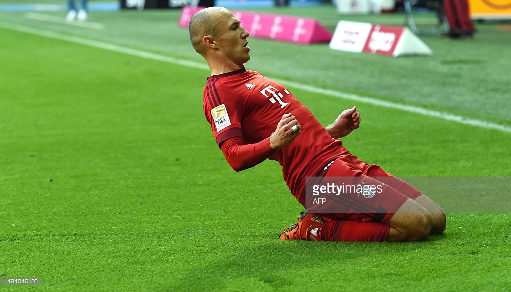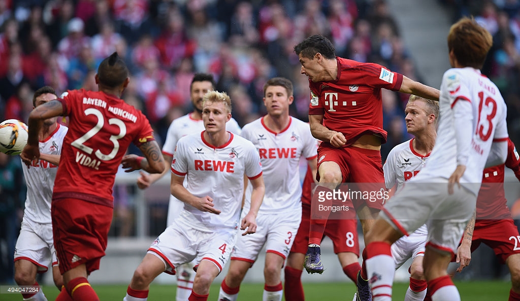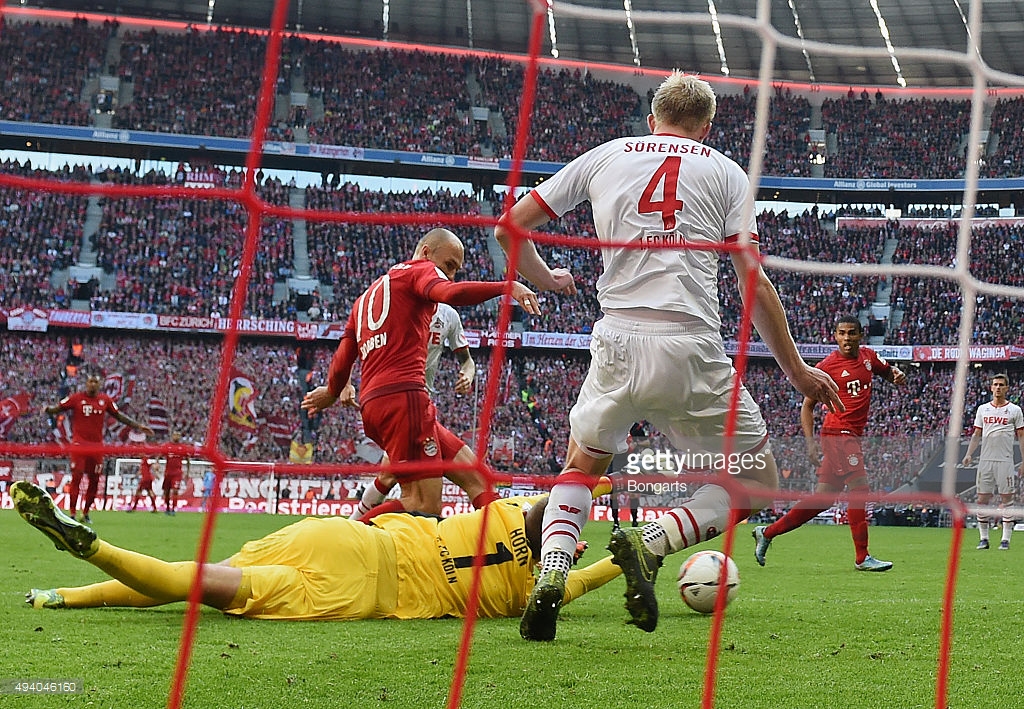 เริ่มเกมมาเป็นบาเยิร์นที่พับสนามบุกอยู่แทบจะข้างเดียว จนกระทั่งนาทีที่ 35 ก็สามารถพังประตูขึ้นนำได้สำเร็จ จากจังหวะที่ ร็อบเบน เก็บตกบอลที่ขลุกขลิกอยู่ในเขตโทษ ก่อนจะค่อยๆแตะหนีแนวรับโคโลญจน์แล้วแปด้วยซ้ายข้างถนัดง่ายๆเข้าไป ส่งให้เสือใต้ออกนำ 1-0