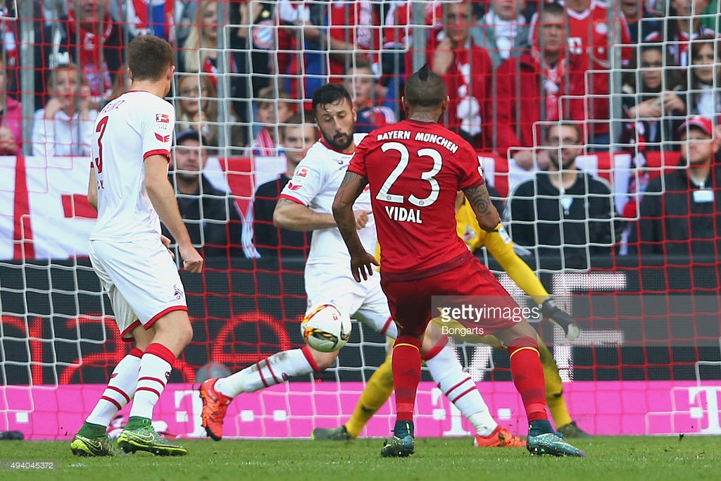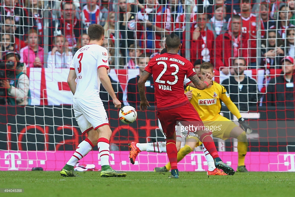 5 นาทีต่อมา ทีมดังแห่งแคว้นบาวาเรียน มาบวกลูกสองเพิ่มได้อีก จากจังหวะที่ โคม็อง ใช้ความสามารถเฉพาะตัว ลากแหวกแนวรับทีมเยือนไปจนสุดเส้นหลังฝั่งซ้าย ก่อนจะตบย้อนมาตรงกลางแถวสองให้ อาร์ตูโร วิดัล แปเน้นเต็มเท้าขวาตุงตาข่าย ช่วยให้บาเยิร์นหนีห่างเป็น 2-0 ก่อนจะจบ 45 นาทีแรกไปด้วยสกอร์นี้