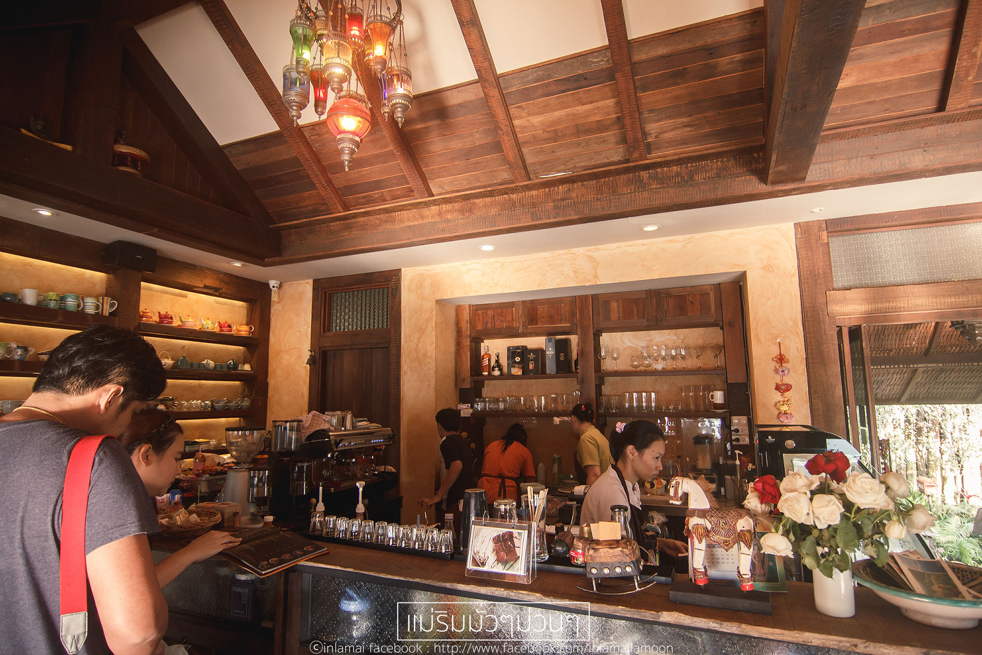 ร้านกาแฟตกแต่งให้เข้ากับบรรยากาศที่นั่นเน้นตกแต่งเป็นสีไม้สบายตา คาเฟ่ก็จะมีคนทำประมาณสี่ห้าคนแต่จะวุ่นวายหน่อยเพราะคนเยอะบริการอาจจะยังไม่ทั่วถึง