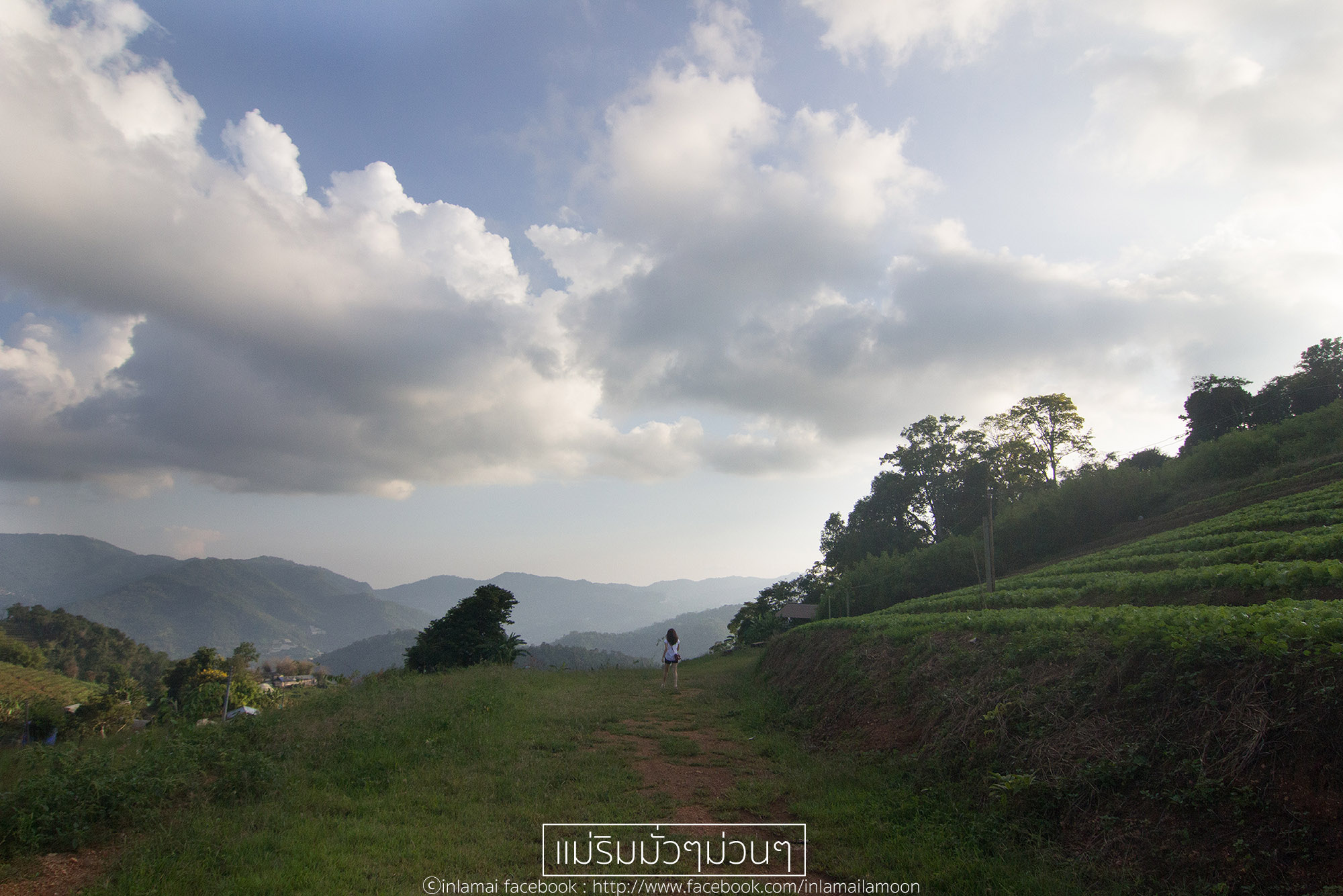 ทีแรกตั้งใจว่าจะกลับแล้วเพราะดูเหมือนไม่มีอะไร แต่โดยนิสัยของแฟนเป็นคนชอบลุยเลยบอกว่าจะลงไปต่อถ้าเดินลงไปแล้วไม่มีอะไรจะกลับ!! พอเดินลงไปก็เจอบ้านเล็กๆเหมือนจะไม่มีอะไร พอหันขวาเท่านั้นแหละครับเจอวิวงามๆมองลงมาเห็นแปรงผักที่ชาวบ้านปลูกกันเป็นระเบียบเหมือนเคารพธงชาติเลยแหละ(ต้องขอบคุณที่มีแฟนลุยๆจริงๆ)