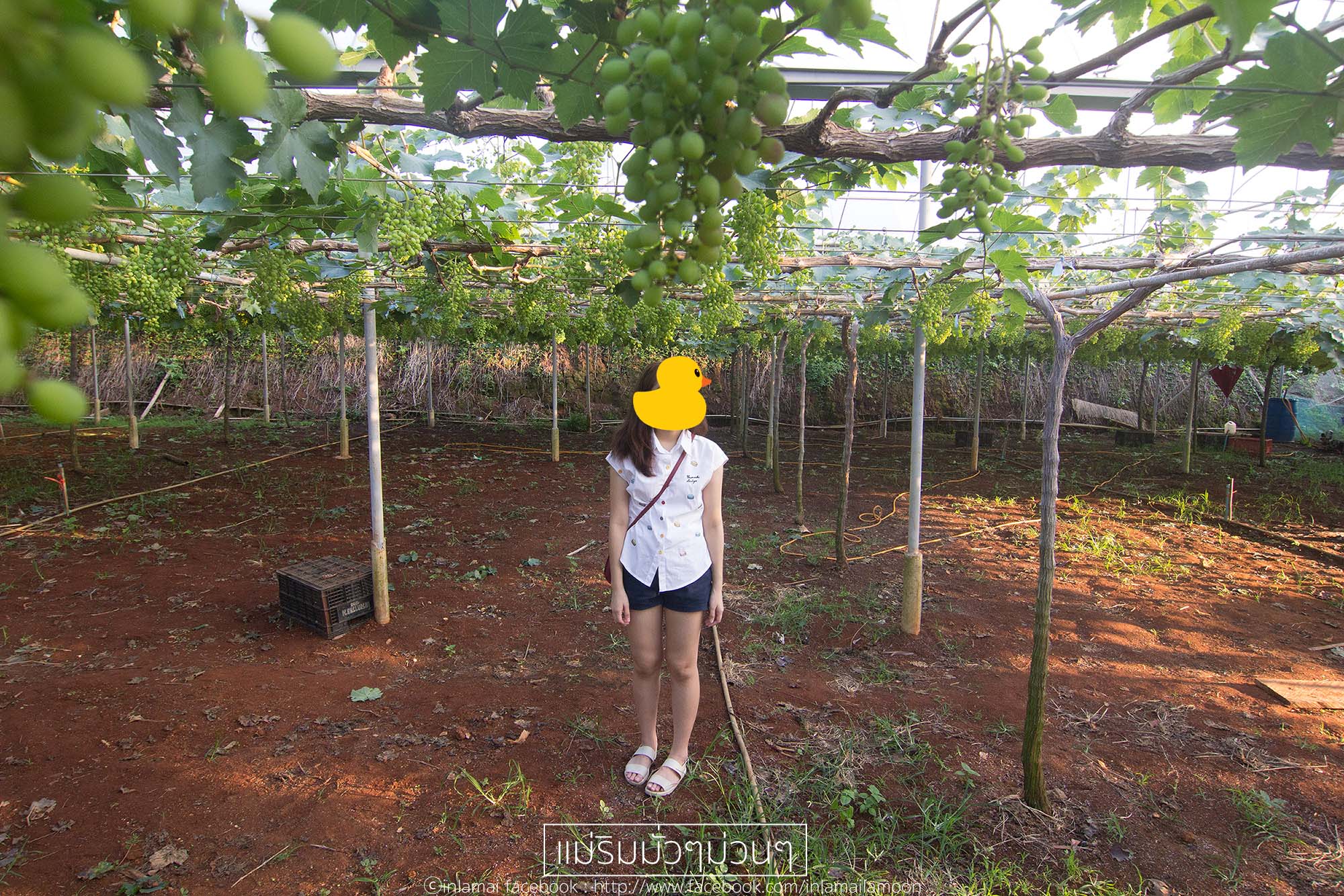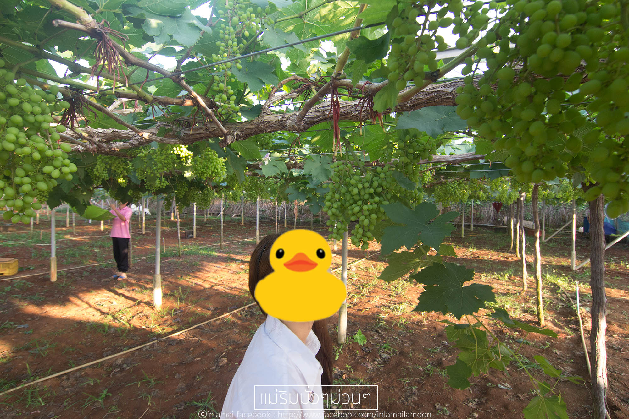แวะไร่องุ่นหน้าบ้านม่อนม่วน เจอพี่คนสวนกำลังทำสวนอยู่เลยถามเค้าว่าจะได้กินเมื่อไหร่เค้าบอกว่าจะได้กินผลประมาณเดือนธันวา(เดี๋ยวมาอีกทีแน่ๆ)