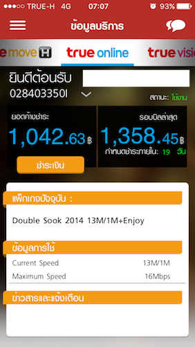 จนเช้าวันนี้ จขกท ได้เปิดแอปของ true iservice เพื่อจะเช็คยอดค่าโทรศัพท์ แต่ไปเจอยอดนี้เข้า ....