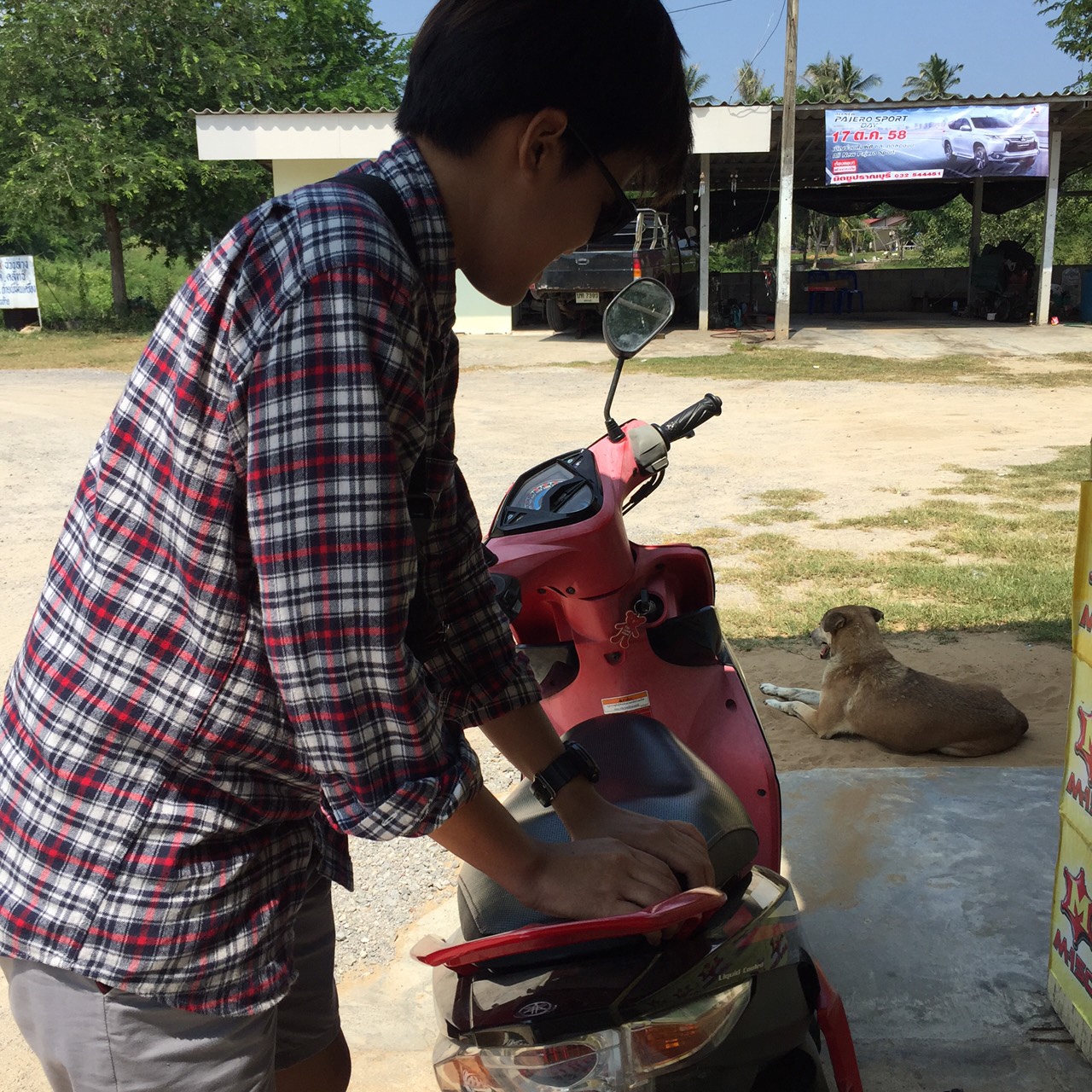 (ส่งถึงหน้ารีสอร์ท ลงเป็นรายสุดท้ายด้วยคะ เป็นส่วนตัวดี๊ดี) เรามาถึงประมาณ 12.00 น. ยังเข้าที่พักไม่ได้ แม่บ้านเขาทำความสะอาด พวกเราเลยได้ลงสำรวจพื้นที่ก่อนเวลาที่กำหนดไว้ เดินไปริมหาดเช่ารถเครื่อง เติมน้ำมัน 50 บาท