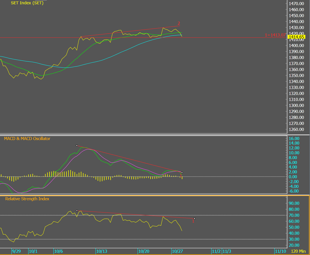 เช็คกราฟหุ้นรายตัวกันด้วยนะครับ บางตัวเกิดBearish Divergence มาเตือนแล้ว