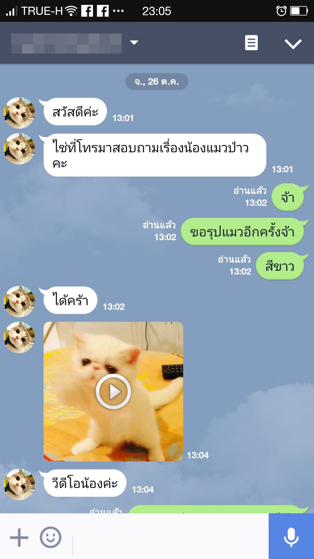 เราขอดูรูปแมวอีกครั้ง เขาก็ส่งวีดีโอแมวมา เราก็นึกว่าเขาเป็นเจ้าของแมวเพราะมีวีดีโอน้องแมวด้วย