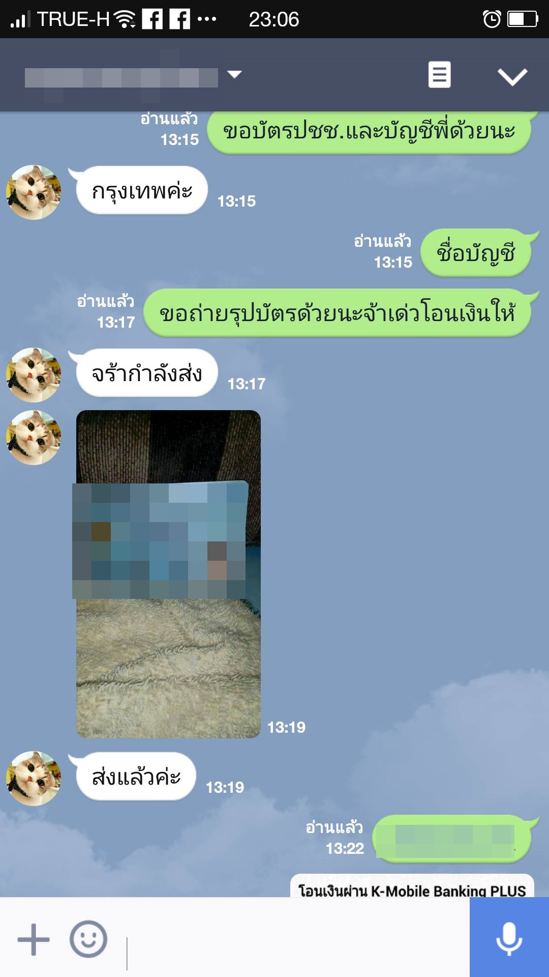 ก่อนโอนเงินเราได้ขอบัตรประชาชนพี่เขาไว้ก่อน เขาก็ส่งมา