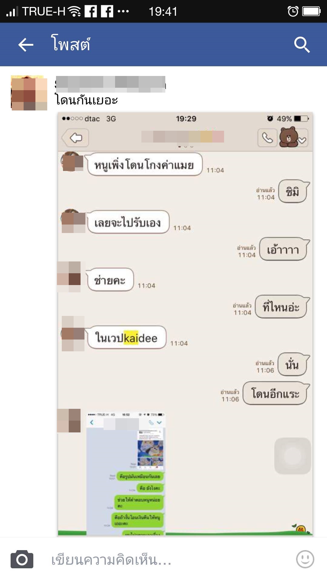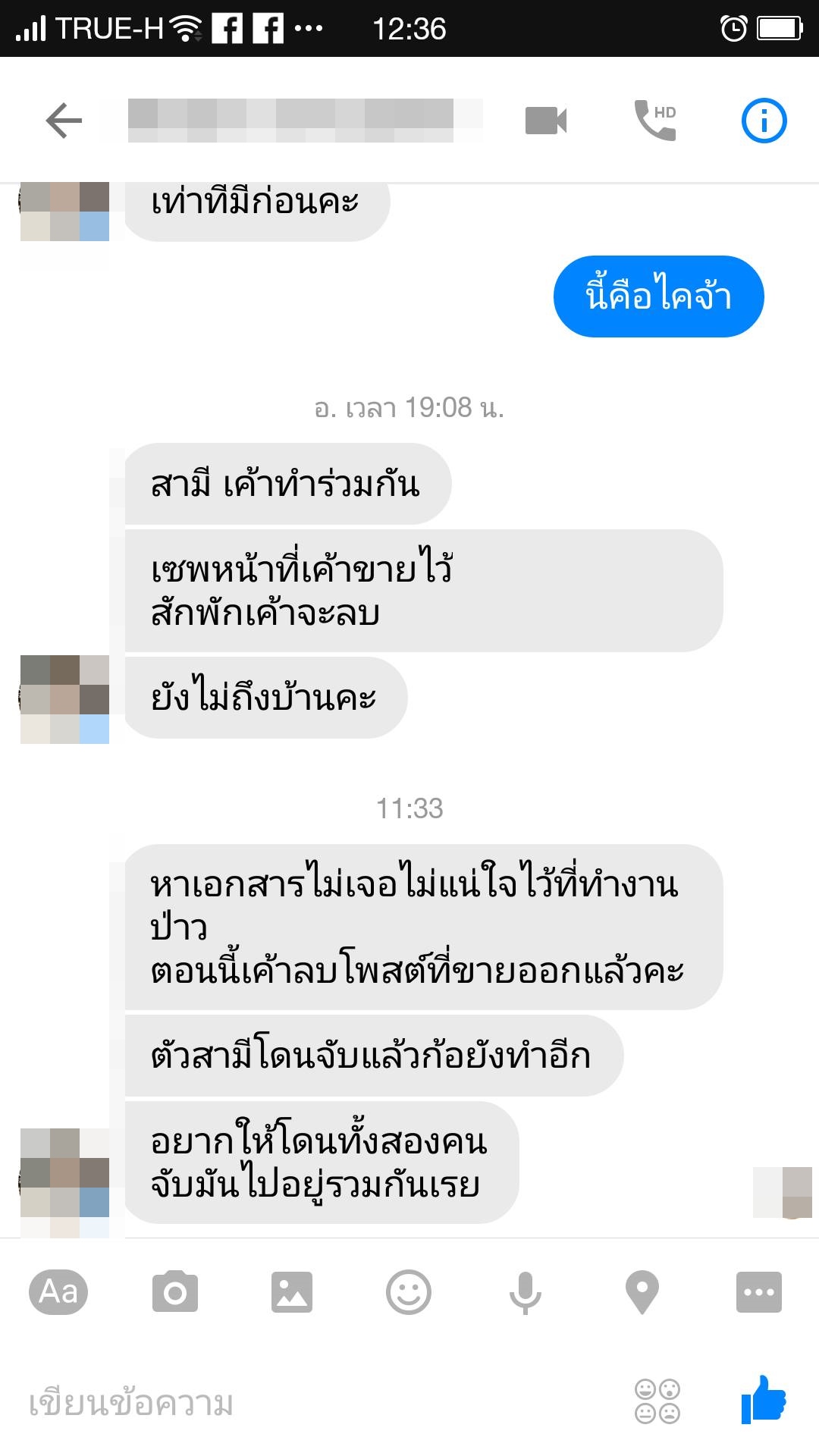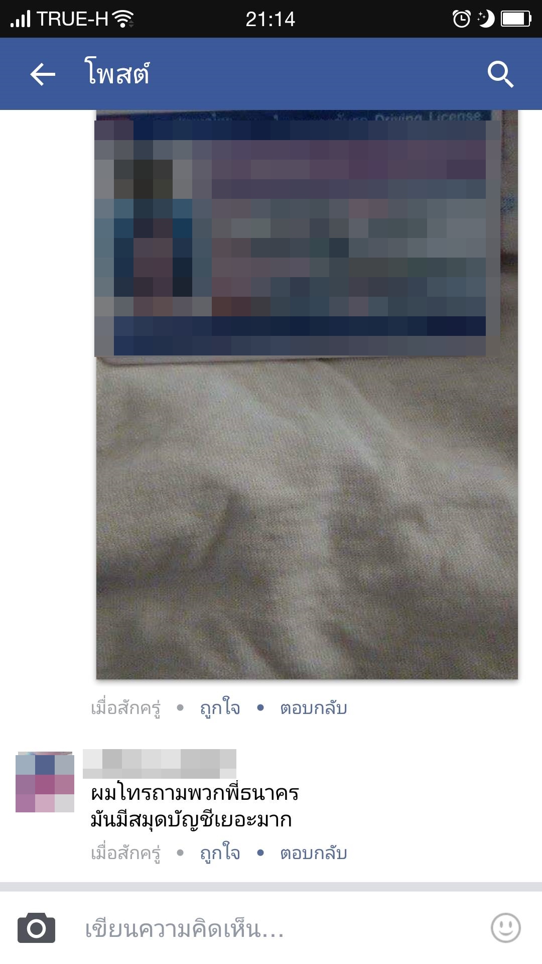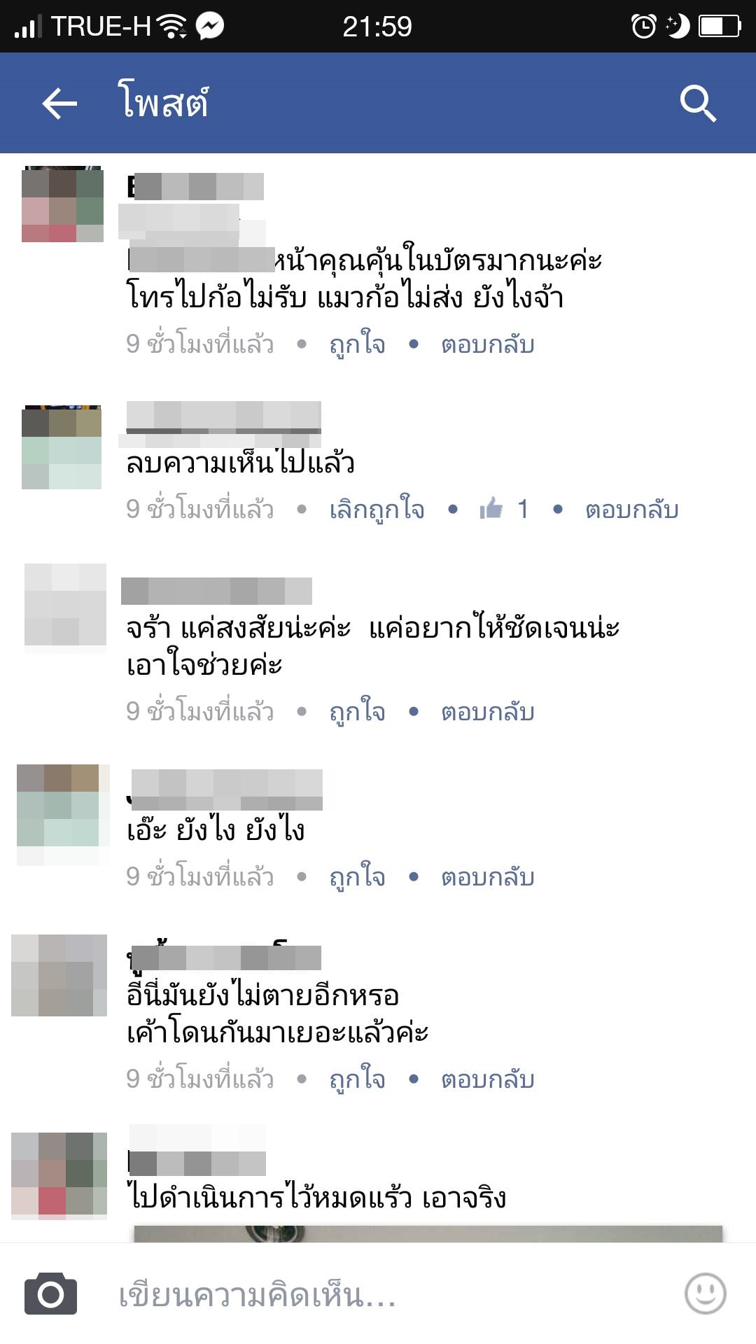 คือเขาไม่ได้กลัวอะไรเลย แถมยังท้าทายอีกด้วยคือทุกคนก็ทำอะไรเขาไม่ได้ เพราะมันเป็นเฟสบุ๊ค และก็มีอีกคนที่มาคอมเม้นต่อว่าโดนเหมือนกัน โดนเป็นหมื่น ก็เลยคิดว่าคนที่โดนบุคคลนี้โกงต่อมีมากกว่านี้แน่ๆ แล้วทำไมเขายังไม่โดนจับ ยังลอยนวลมาถึงทุกวันนี้ ถามในกลุ่มที่โดนโกงไป ก็มีคนบอกว่าแจ้งความไปแล้ว แต่ตำรวจไม่ดำเนินการให้ คือไม่ได้ต้องการเงินคืนเพราะคิดว่าคงไม่ได้คืนแล้วแน่ๆแต่อยากให้บุคคลนี้ที่ทำผิดโดนจับและดำเนินคดีตามกฏหมาย ไม่อยากให้ใครต้องมาตกเป็นเหยื่อรายต่อไป ขอให้พี่ๆน้องๆทุกคน ช่วยกันดันกระทู้นี้ขึ้นไป ถือว่าช่วยกันทำบุญ ให้ไปถึงคุณสรยุทธ์ และทีมงานเรื่องเล่าเช้านี้ให้ช่วยประสานงานไปยังตำรวจให้จับตัวคนร้ายมาดำเนินคดีด้วยค่ะ ขอบคุณค่ะ