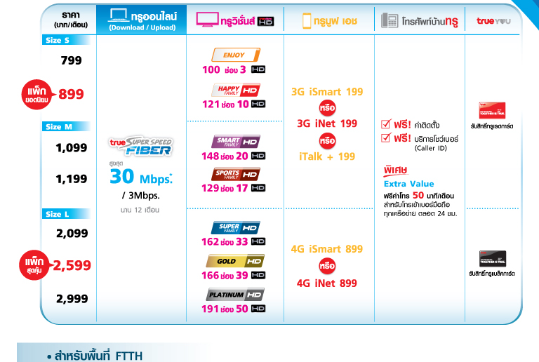 ทรูจัดหนัก 599 30Mb,799 50Mbps,1399 200Mbps,1999 300Mbps