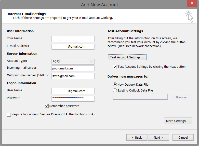 คือเราต้องการที่จะ Sync Gmail ไป Outlook 2010 หรือ 2013 ก็ได้ โดยจะ Sync ไปในรูปแบบ Account type แบบ POP