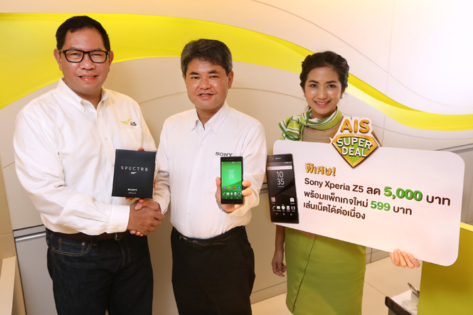 สำหรับลูกค้าเอไอเอสทั้งปัจจุบัน, เปิดเบอร์ใหม่, ย้ายค่ายเบอร์เดิม หรือเปลี่ยนจากเติมเงินเป็นรายเดือน เมื่อซื้อ “Sony Xperia Z5” รับส่วนลดค่าเครื่องทันที 5,000 บาท เหลือเพียง 19,990บาท (ราคาปกติ 24,990 บาท)