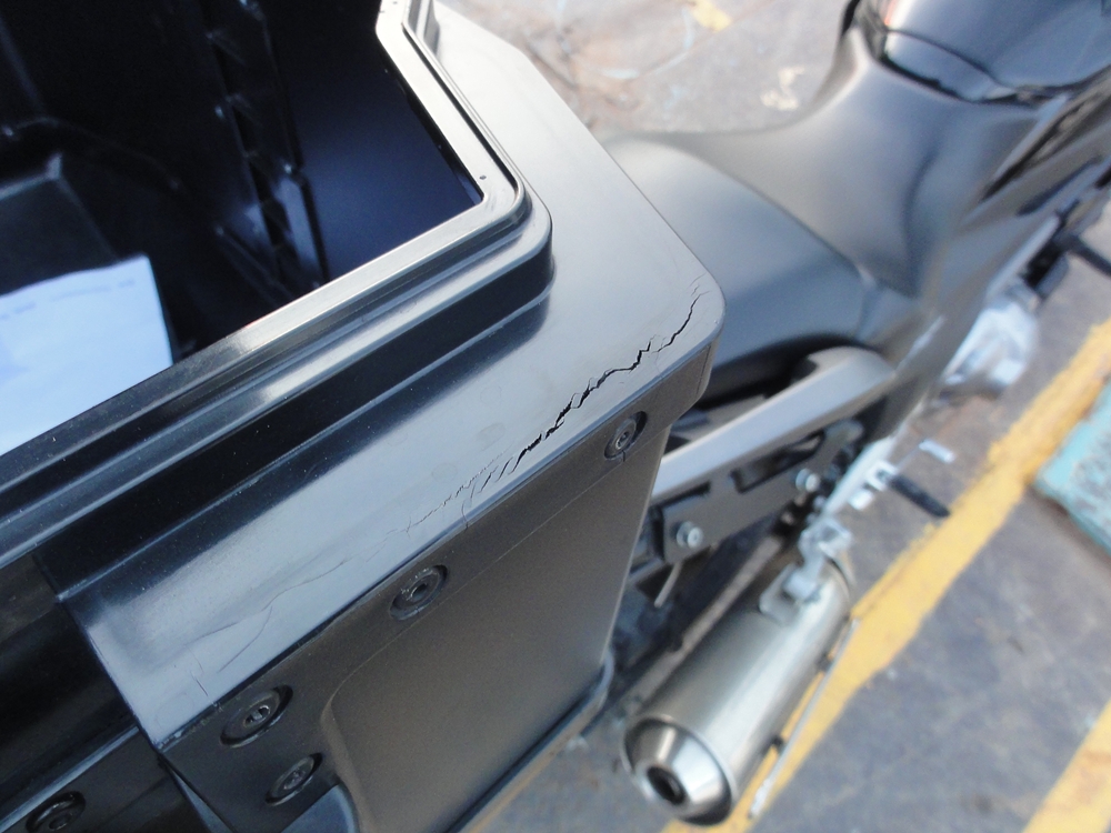 กล่องหลัง.... hepco & becker รุ่น xplorer กรอบแตกหลายจุด !!!