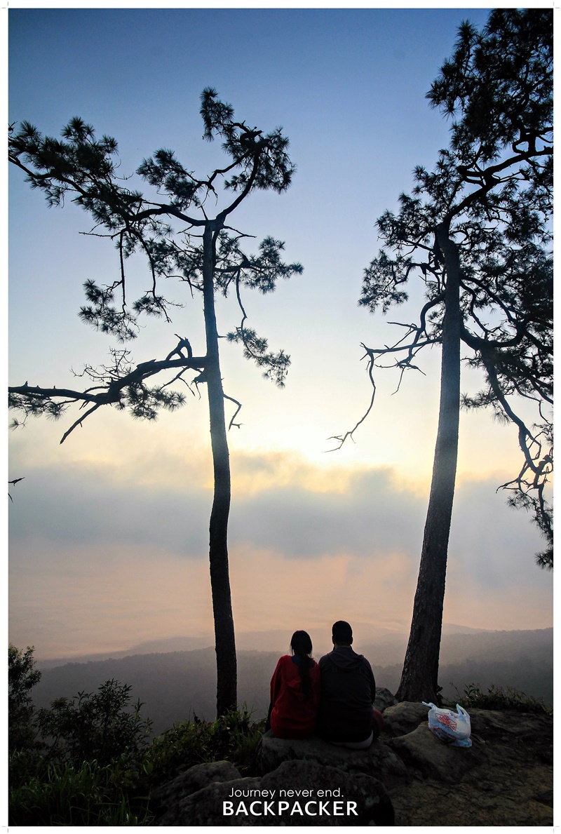 วันนี้ ที่ผานกแอ่น รอบข้างผมเต็มไปด้วยหมอกจางๆ และท้องฟ้าก็เต็มไปด้วยเมฆ ทำให้วิวเบื้องอาจจะไม่สวยมากมาย แต่อย่างน้อยบรรยากาศ และอากาศของที่นี่ก็ทำให้ผมรู้สึกถึงความสุข ได้เช่นกัน แต่ก็แอบอิจฉาคนที่มาเป้นคู่จริงๆ แฮ่