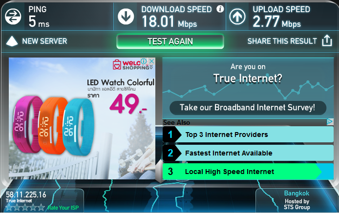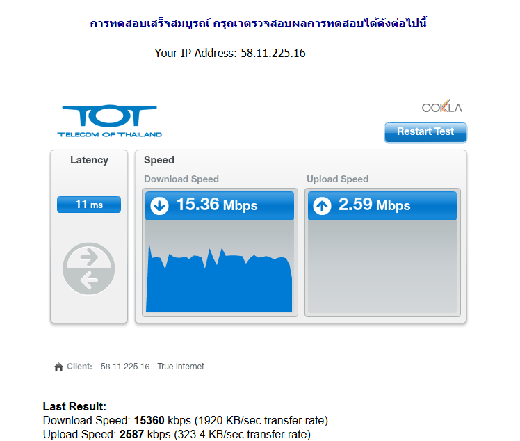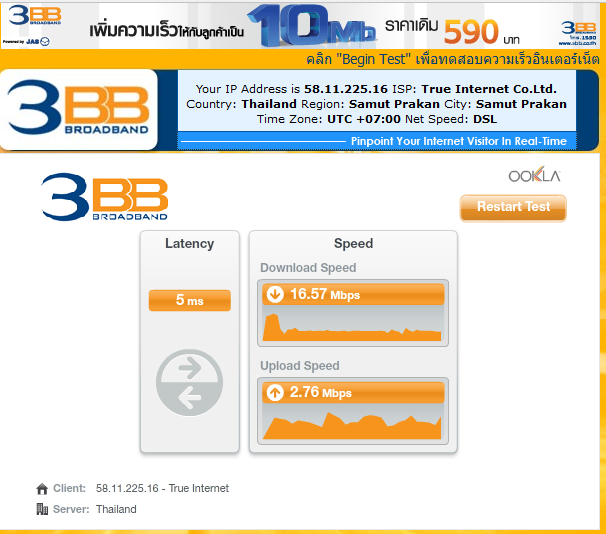หมายเหตุ ทดสอบผ่านคอมเครื่องใหม่ มือถือ แล้วต่อสายแลนแล้ว ได้ค่าใกล้เคียงกันครับ