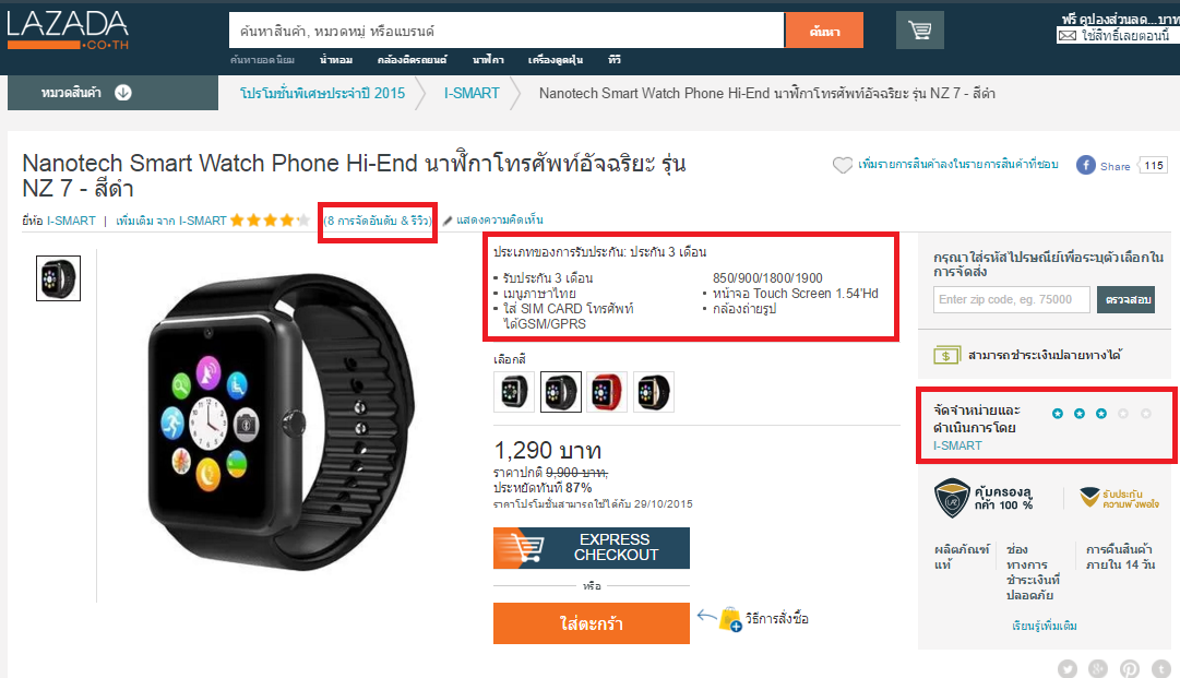 แล้วผมก็สั้งซื้อNanotech Smart Watch Phone Hi-End นาฬิกาโทรศัพท์อัจฉริยะ รุ่น NZ 7 - สีดำ จากร้านI-SMART แต่เมื่อลองมาดูดีๆของเหมือนกันแบบนี้ผมก็เจอในร้านของNANO TECH ซึ่งตอนนี้ผมสั้งซื้อสินค้าตัวนี้ไปแล้วเมื่อวันก่อนแล้วผมเลือกการจ่ายเงินแบบจ่ายเงินปลายทาง ซึ่งตอนนี้ผมยังไม่ได้รับของ แต่เมื่อของมาถึงผมจะรีวิวของที่ผมสั่งจาก LAZADAร้านI-SMART ให้ดูนะครับบว่ามันจะเป็นยังไง