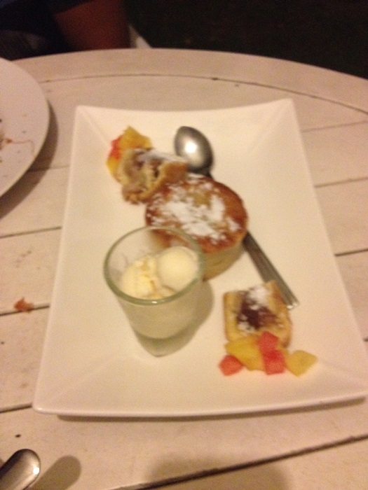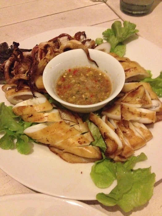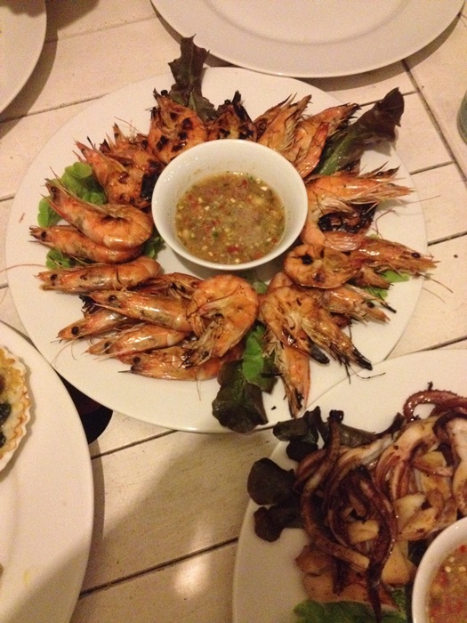 เดินสำรวจกันอย่าหนำใจแล้ว ตัวเปียกตัวด้วยไปแช่น้ำตกน้อยๆมาก ก็กลับเข้าที่พักเล่นในสระบ้านพักเราต่ออีกนิดหน่อย ก็อาบน้ำพักผ่อน รอเวลา Dinner ของเรา 55 ทำยังกะไป Honymoon ยังไม่ได้แต่งเลย ไม่มาขอซะที่ เข้าเรื่องต่อ ชุดอาหารของเราก็อยู่ใน แพ็คเก็จที่เราซื้อในงานไทยเที่ยว เป็นชุด Sea Food มีข้าวผัดปูคนละจาน หมึกย่าง กุ้งเผา หอยเซล์ ขนมหวานตบท้าย นั่งกินไปก็หนาวไป เลยสั่ง บรูมาการิต้ามาดับความหนาว ว่าแต่เอาภาพ บรูมาการิต้าลงได้หรือป่าวค่ะ นั่งกินซักพักมีเพื่อนรวมโต๊ะ เจ้าน้องหมา กุ้ง หมึก ก็กินแบ่งให้ทานด้วยกันแกะกุ้งไม่ทันก็เห่าเรียก สั้นหางดิกๆ อะไรจะแสนรู้ป่านนั้น อิ่มหนำสำราญกันแล้ว หนังท้องติ่งหนังตาหย่อน เข้าบ้านพัก