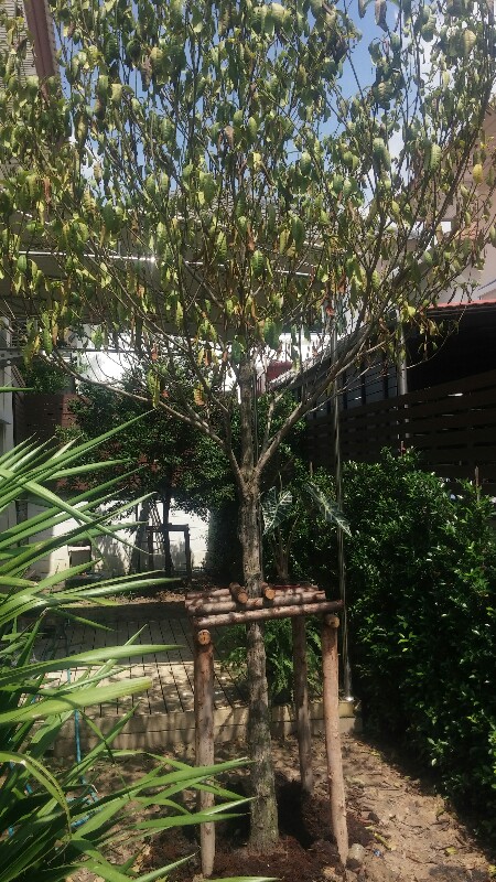 พอดีซื้อกันเกรามาปลูกได้ราวๆ 5 เดือน แรกๆ นึกว่ารอดเพราะต้นเขียวแตกยอดเป็นพุ่มสวยเลย แต่หลังจากปรับพื้นที่เพื่อปูแผ่นพื้นทางเดินรอบๆ ต้นไม้ ซึ่งจำเป็นต้องเอาดินมาถมตรงจุดที่ปลูกน้องกันเกราให้สูงขึ้นอี