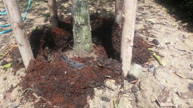 รบกวนขอความรู้และคำแนะนำหน่อยนะคะ ที่บ้านดินเดิมคือทรายทะเล แล้วเพิ่งถมดินลงไปสูงขึ้นมาประมาณเกือบ 2 เมตรด้วยดินดาน ตอนนี้อยากจะปลูกต้นเสม็ดแดง ซึ่งเป็นไม้ล้อม 3 ต้น ตุ้มขนาด 2 เมตร &n