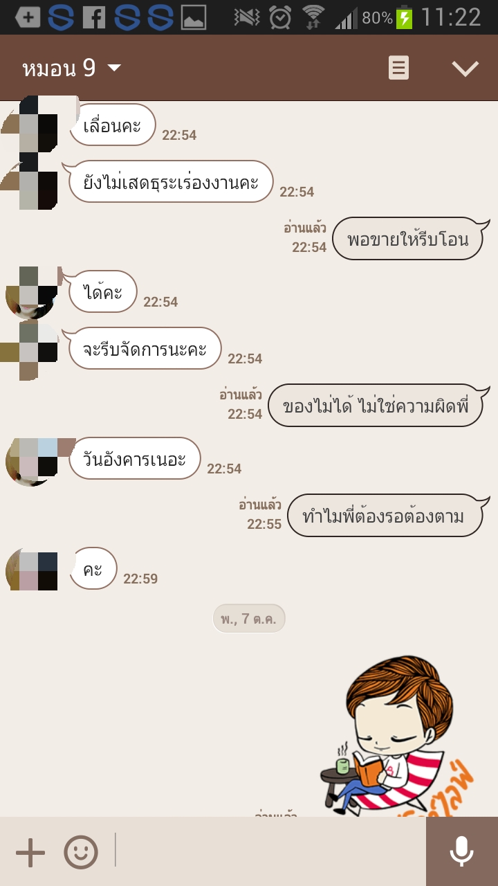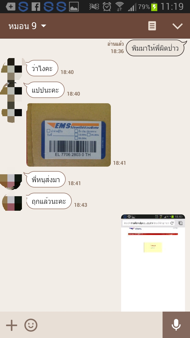 เจรจาขอเงินคืน เลื่อนมาจนล่วงเลยมาวันนี้ 30/10/58 เราติดต่อนางไม่ได้ทั้งไลน์ ทั้งเฟส ทั้งโทรศัพท์ ถามเพื่อนๆ มีคนบอกว่านางไม่ได้ส่งของจริงแน่นอน ไปเซฟรูปเลขแทรคของคนอื่นมาหลอกเรา ก่อนหน้านี้อ้างว่ายังอยู่สิงคโปร์ แชร์โลเคชั่นมา เราขี้เกียจต่อความ ใครๆก็แชร์ได้ ทั้งที่ตั๋วกลับวันที่ 30/9/58