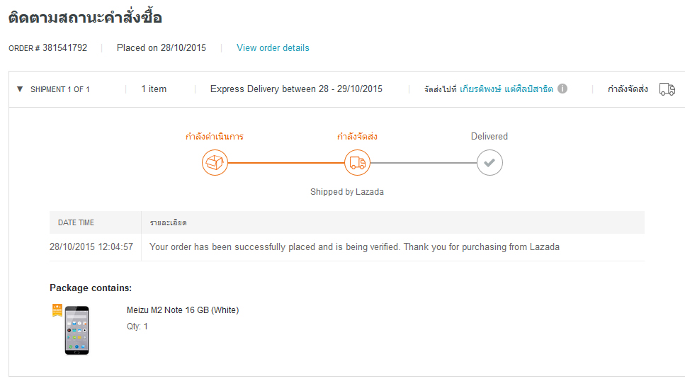 มารอบนี้เห็น Meizu M2 Note น่าสนใจเลยจัดซักหน่อย และเห็นหลายๆท่านใช้บริการ Express Shipping จะได้ของเร็ว ผมก็อลงเช็คว่า ห้องเพื่อนอยู่ในพื้นที่บริการเลยจัดซักหน่อย