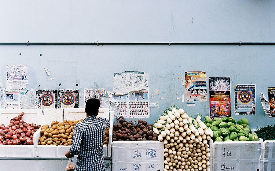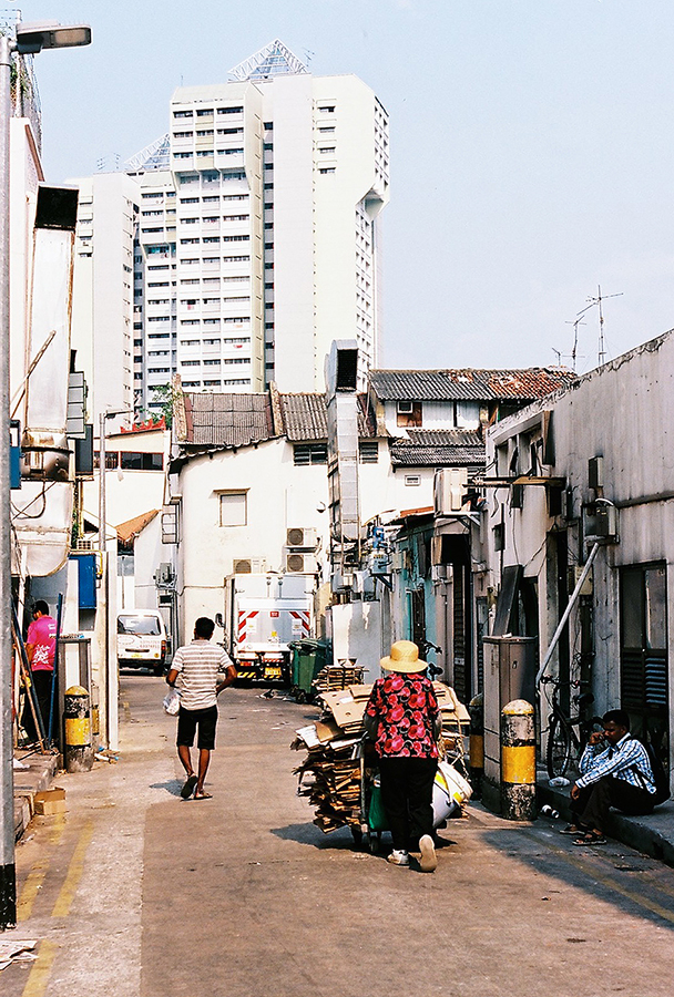 ( ภาพอาม่าตัวขาวๆ เสื้อสีแดงเข็นรถเข็นไปบนถนน ข้างหลังเป็นพี่แขกผิวเข้มๆ เดินแน่นกันบนฟุดบาท ข้างบนเป็นป้ายอะไรอินเดียๆ หายหมด 555 )