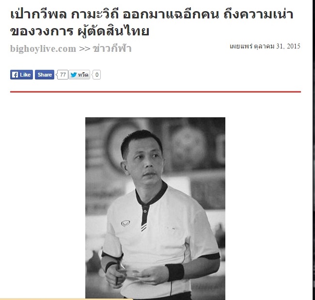 http://www.ผลบอล.com/news-7596 "อนุวัฒน์ ฝีมือช่าง"เปิดใจ!!เป่าเร็วไปนิด แต่มันต้องเป็นประตู อนุวัฒน์ ฝีมือช่าง ผู้ตัดสินชื่อกระฉ่อนวงการฟุตบอลไทย ออกมาเปิดใจยอมรับ&nb
