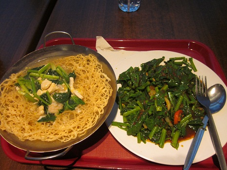 ลักษณะคล้ายๆราดหน้าบ้านเรานะคะ อีกจานเป็นคะน้าผัดเครื่องแงแบบบ้านเขาอ่ะค่ะ เผ็ดนิดๆ อร่อยดีค่ะ
