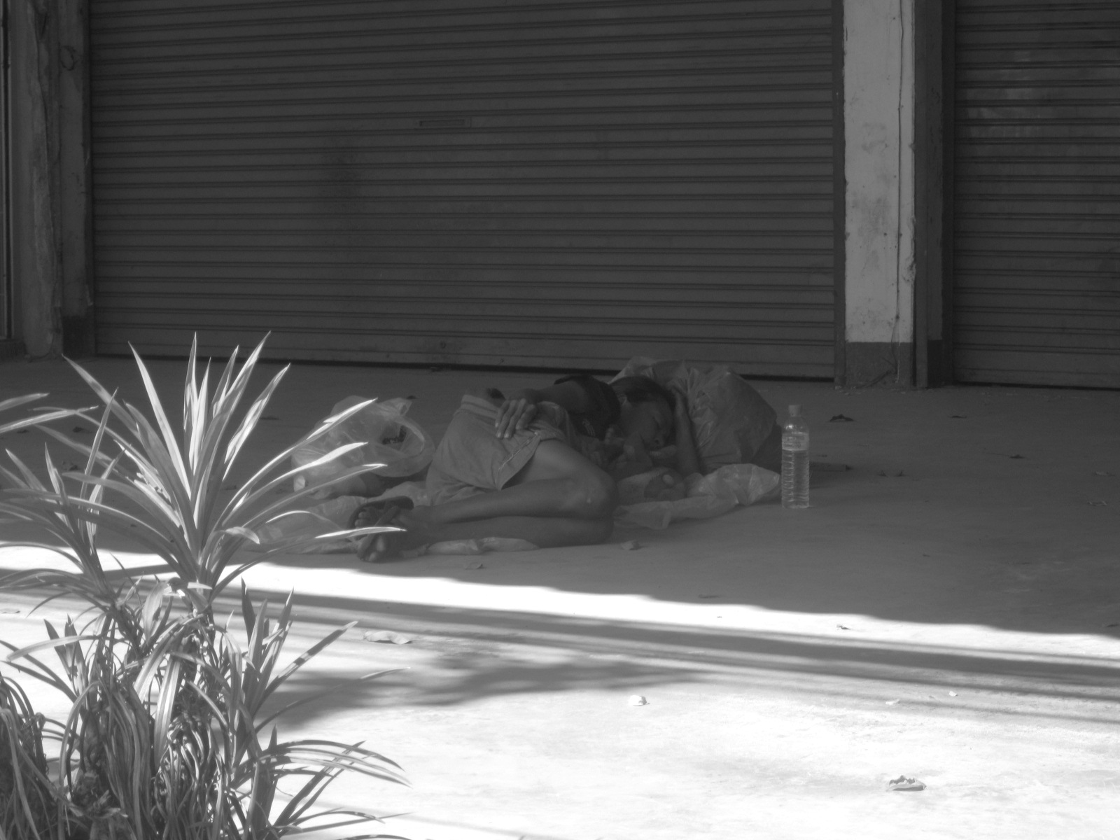 วันนี้เห็นคุณป้าคนนี้นอนอยู่หน้าปากซอยทางเข้าหอ ข้างตัวมีถุงขวดกับน้ำเปล่าที่เหลือค่อนขวด สิ่งเดียวที่ทำได้ตอนนั้นคือ ได้แต่เดินไปร้านขายน้ำ ซื้อน้ำมาขวดนึงแล้วนำไปตั้งใกล้ๆตัวแก หวังว่าพอแกตื่นมาเห็นจะได้กินให้สดชื่นบ้างก็ยังดี หากว่าใครที่เห็นคนแบบนี้ อย่ารังเกียจเขาเลยนะ เพราะหากเป็นตัวเราเอง ญาติของเราเองคงไม่สนุกแน่ ซื้อน้ำ หรือขนม หรือ อาหารไปวางให้เขาก็ได้ อิ่มแค่หนึ่งมื้อแต่ต่อชีวิตเขาได้อีกหนึ่งวันนะ