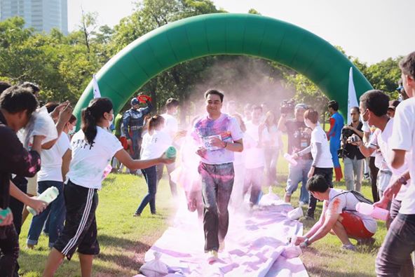 ซึ่งมีนายอภิสิทธิ์ เวชชีวะ หัวหน้าพรรคประชาธิปัตย์ นายชวนนท์ อินทรโกมาลย์สุต และประชาชนให้ความสนใจเข้าร่วมกิจกรรมดังกล่าวเป็นจำนวนมาก ซึ่งกิจกรรม The Color Run Thailand ถูกจัดขึ้นในประเทศไทยเป็นครั้งแรก ซึ่งผู้เข้าร่วมงานจะวิ่งในระยะทาง 5 กิโลเมตร ไม่มีการจับเวลา และขณะที่วิ่งผ่านทุกๆ 1กิโลเมตร จะถูกสาดด้วยผงแป้งหลากสีสันและการวิ่งสาดสีครั้งนี้มีกฎว่า แต่งกายด้วยเสื้อขาวบริเวณจุดสตาร์ท และเมื่อจบการวิ่งเสื้อผ้าจะเปรอะเปื้อนไปด้วยสีสันสดใส