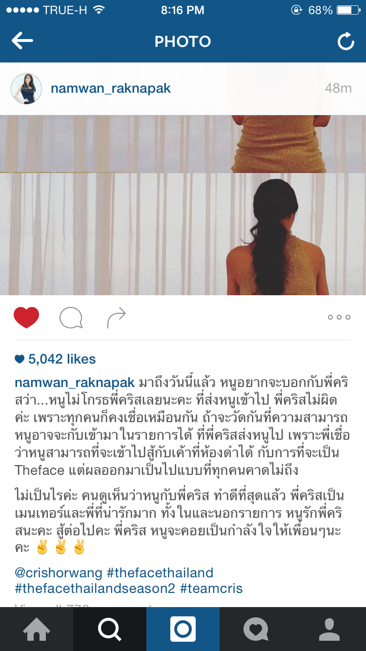 ไปเจอcomment หนึ่งในไอจีน้ำหวาน the face 2