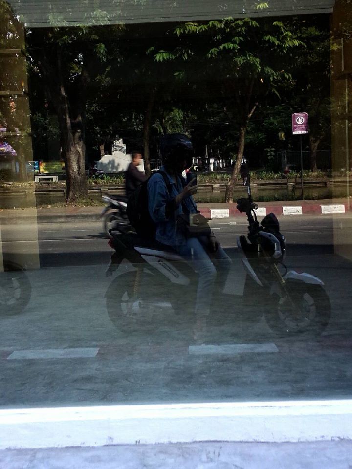ถึงเชียงใหม่ อาเขต 9โมงเช้า เดินออกมาแบบงงๆ ไปทิศไหนดี เอ้อ เราต้องหาร้านมอไซต์ ไหนๆๆ ร้าน BIKKY ชื่อดัง ที่เรารีเสริทกูเกิลมา?? มีตรงอาเขตนิ ลุงแถวนั้นเห็นหมุนซ้าย หมุนขวา ท่าทางดูไม่ได้ เลยยื่นให้ความช่วยเหลือเอง จะไปไหนรึ บลาๆๆ นั่นไง BIKKY อ้อ ด้านขวาหน้าอาเขตเลยนิหว่า เอาล่ะ เดินไปเช่ารถ ไปถึงหน้าร้าน BIKKY แต่เราเช่าร้านข้างๆอ่ะ คนน้อยดี แหะๆ จะได้คุยสะดวก พอตกลงเช่ามอไซต์เรียบร้อย เจ้าของบอกเช็ครถก่อนเลยน้อง เลยแอบถามว่า สตราทไงนะพี่ เจ้าของ งง น้องขับเป็นป่าวเนี่ยย เราก็บอก "เป็นสิ" เราก็ส่งกุญแจให้พี่เค้า เอ้า สตราทสิพี่ พอสตราทเสร็จ เราก็ถามวิธีใช้งานเบื้องต้น เช่น เปิดเบาะ เติมน้ำมันตรงไหน เค้าก็ย้ำว่าเราขับเป็นป่าว เราก็หนักแน่นว่า "เป็น" จากทฤษฎีขี่จักรยานได้ ขี่มอไซต์ได้ ช่ะ