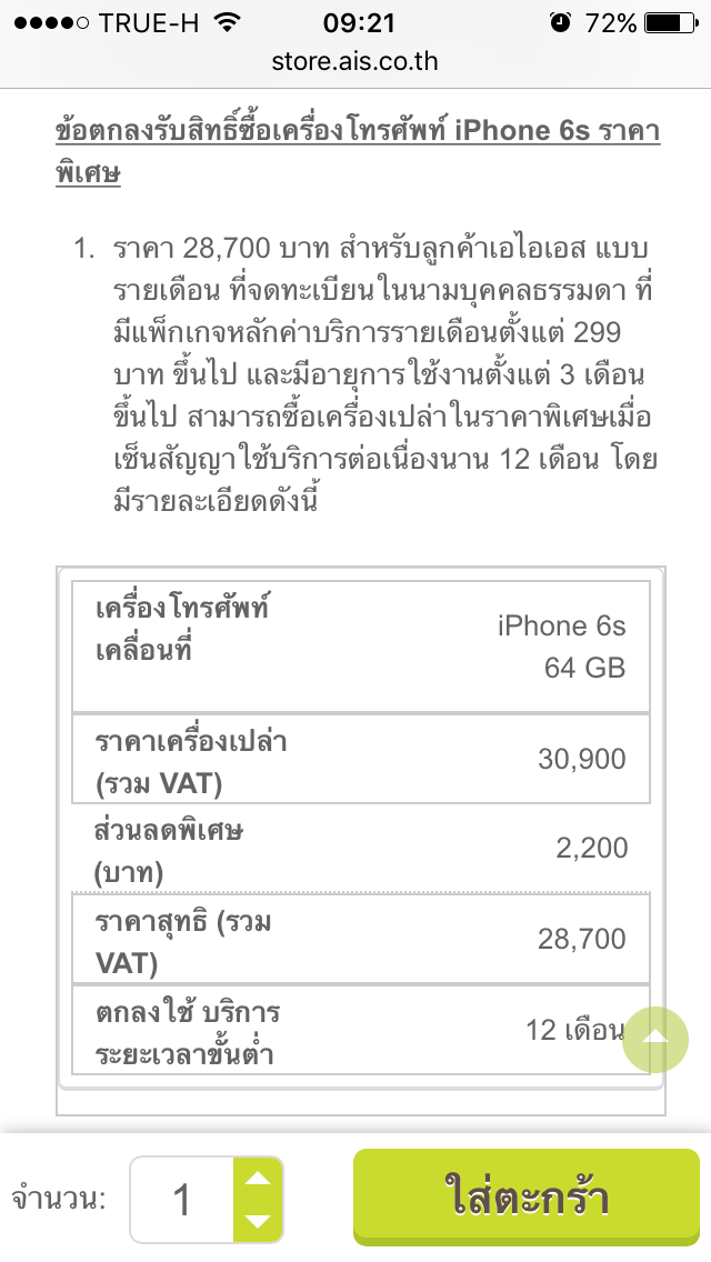 ถามเซ็นสัญญา Ais ซื้อเครื่อง Iphone 6s