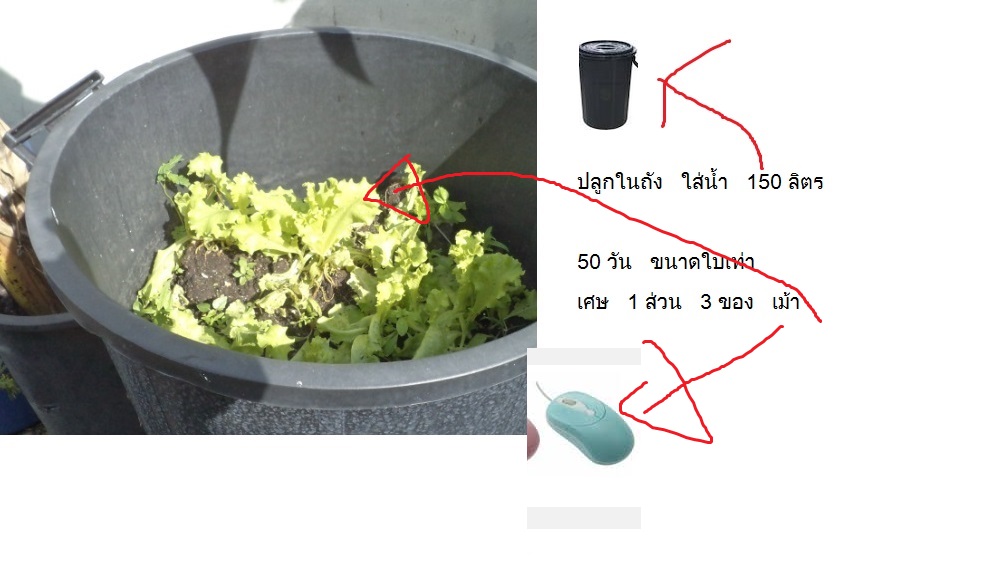 สิบเดือน ก่อนเคยปลูกผัดกาดหอม ในถัง พาสติค 150 ลิตร
