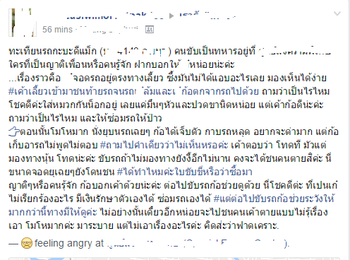 อีกอย่างเราว่าผู้ชายคนนี้เขาลงมาดูและกล่าวแสดงความรับผิดชอบ เหตุใดจึงต้องโพสต์ป้ายทะเบียนเขาด้วย (เราลบเลขไปแล้ว)