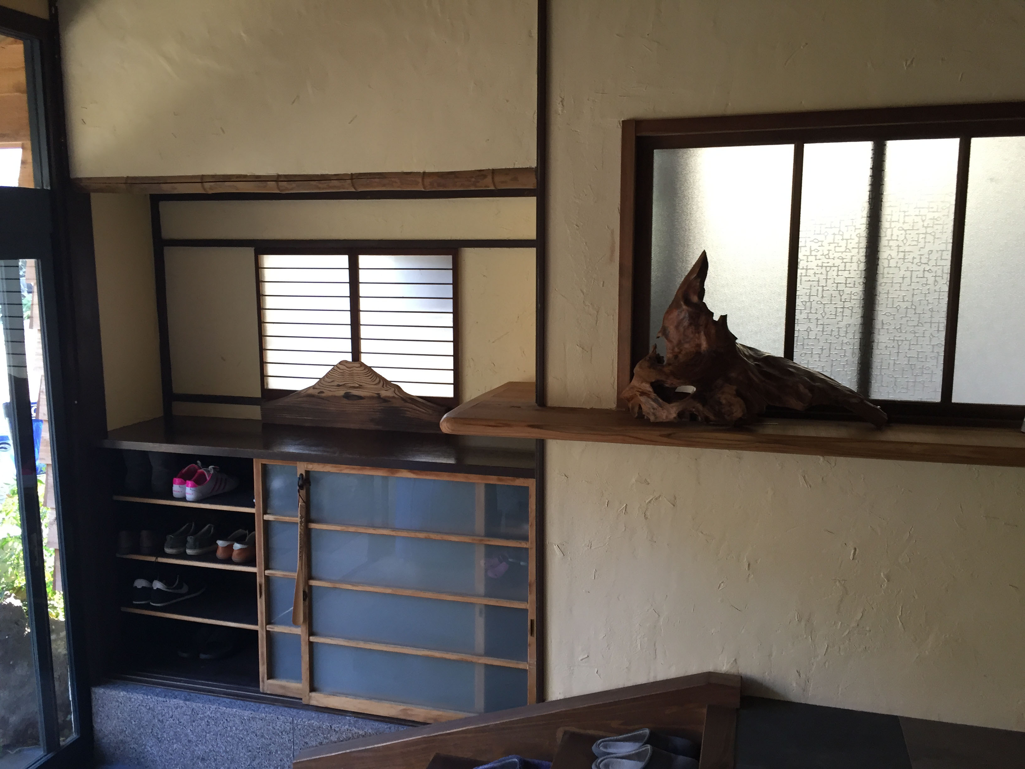 เปิดประตูเข้ามาจะเจอ ชั้นวางรองเท้าทางด้านซ้ายมือ ถอดรองเท้าเราออก แล้วเก็บเข้าชั้นให้เรียบร้อยนะ เปลี่ยนมาใส่รองเท้าที่ทางที่พักเตรียมไว้ให้ ( เราแอบจองลายจุด อย่ามาแย่งชั้นนะ เราบอกเพื่อนไว้ 555)