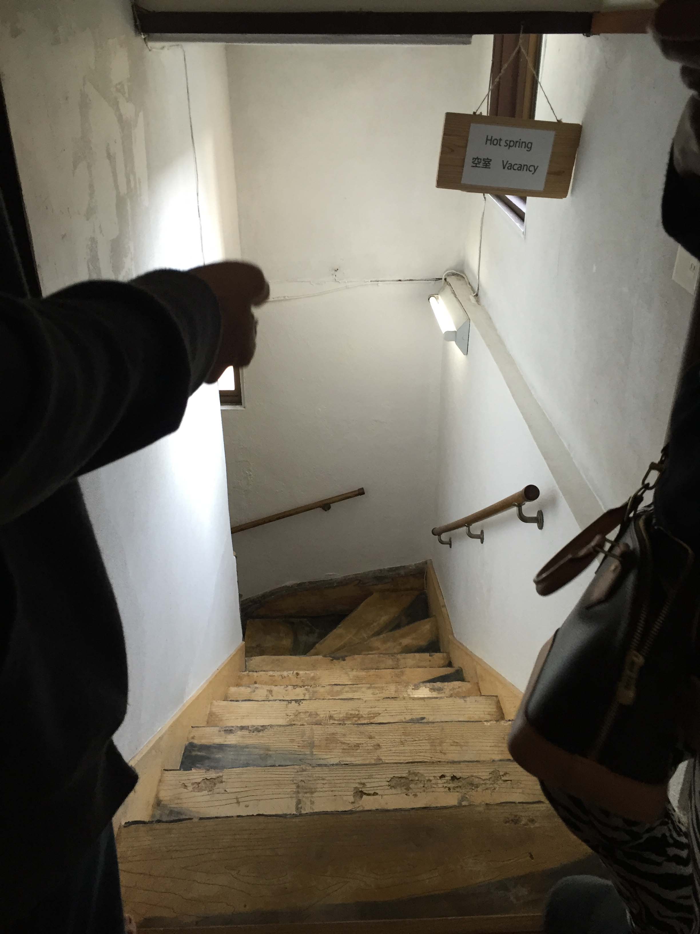 ทางลงไปแช่ออนเซ็น จะมีป้ายให้หมุนเวลาเราลงไป พอขึ้นมาเราก็หมุนกลับ ทุกคนจะได้รู้ว่าเราใช้เสร็จแล้ว อิอิ