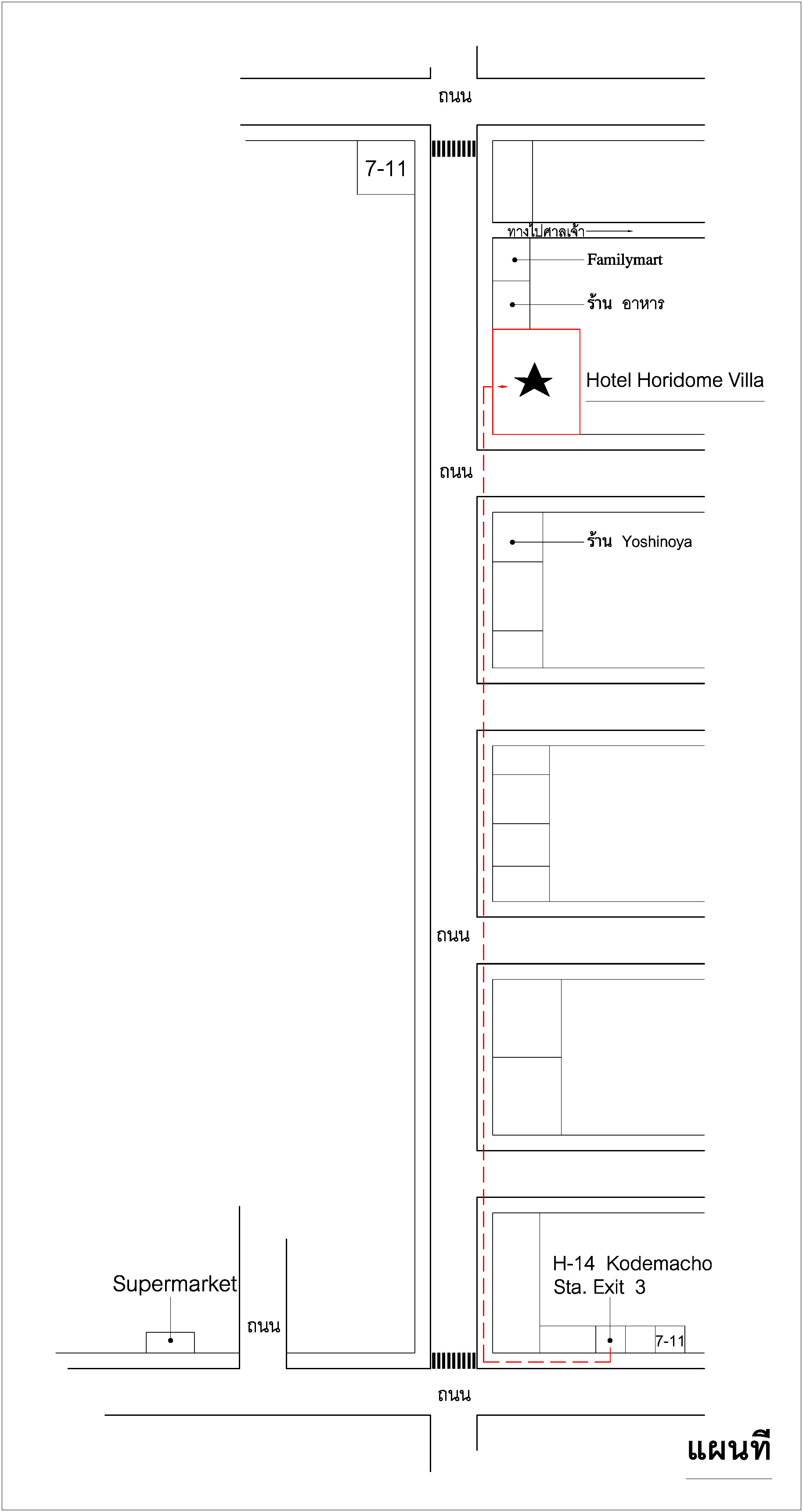 พอมาถึง สถานี Kodemacho ( H14) ให้ออกทางออก 3 แล้วเดินตามเส้นสีแดงในแผนที่ไปได้เลย ถึงอย่างปลอดภัย ชัวร์ 555
