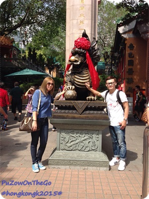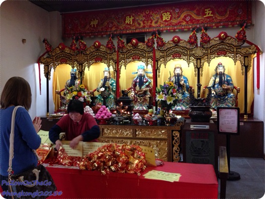 คนเยอะคะ ทัวร์มาลงเยอะเลยทีเดียวโดยเฉพาะชาวจีน เราเข้าไปลูบท้อง ปี๋เสี๊ยะ ก่อนเลย ท้องไล่มาเท้า อธิษฐานตามต้องการเลยนะคะ แล้วเดินเข้าไปจะเป็นเทพเจ้าตามราศีเกิด เดินไปอีกหน่อยจุดธูปเก้าดอก เดินเข้าวัด ไหว้ตามลำดับ ปักที่ละ 3 ดอกคะ ขาออกมาหน้าวัดคนว่างเลยรีบถ่ายรูปกะปี๋เสี๊ยะเป็นที่ระลึกอีกรูปค่ะ แล้วแป๊บเดียวจริงๆทัวร์กรุ๊ปต่อไปมาลงอีกแล้ว หาที่ถ่ายรูปยากมากจริงๆคะ
