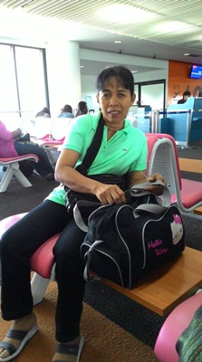 ช่วงระหว่างรอที่เกท แม่มีอาการตื่นเต้นอย่างเห็นได้ชัด เรียกว่าอึนไปเลย