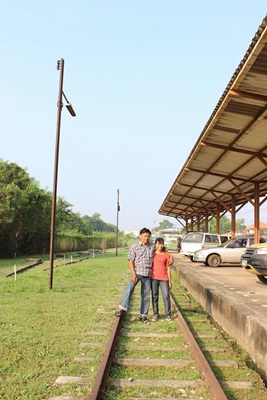ด้านหน้าโรงแรมเป็นสถานีรถไฟเก่า สุดสายที่ตลาดหนองคาย เราเลยถ่ายรูปเล่นกันหน่อย
