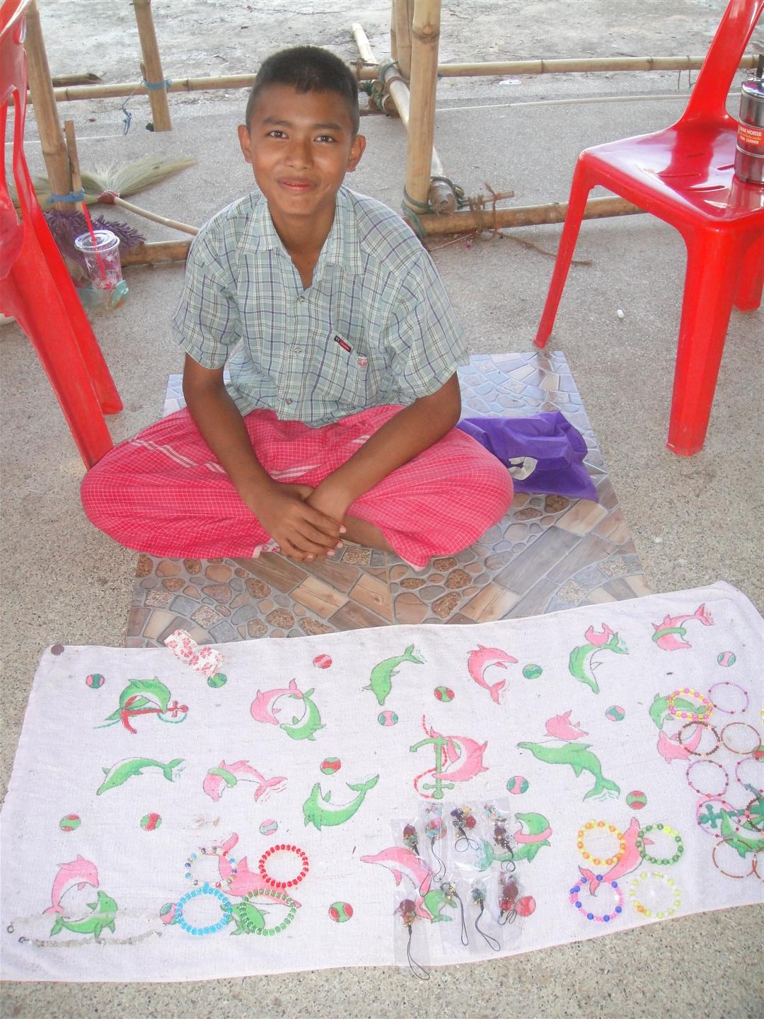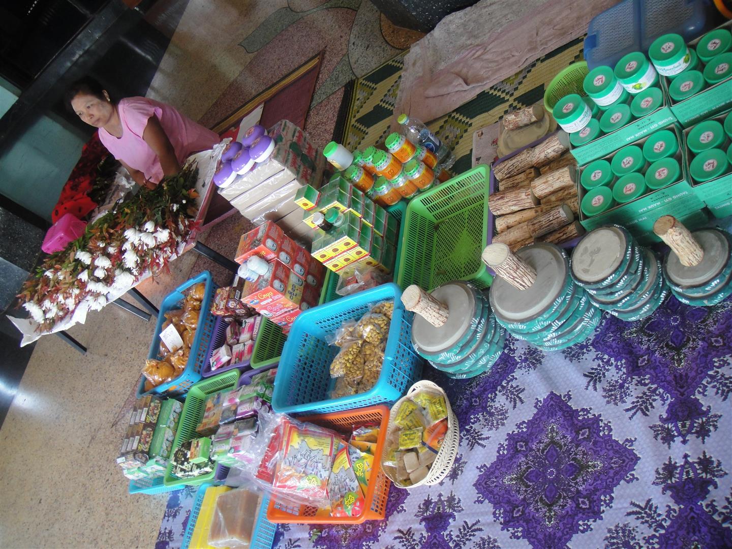 เข้ามาในวัดจะเจอคุณพี่พม่า ขายดอกไม้กับเครื่องใช้ครับ