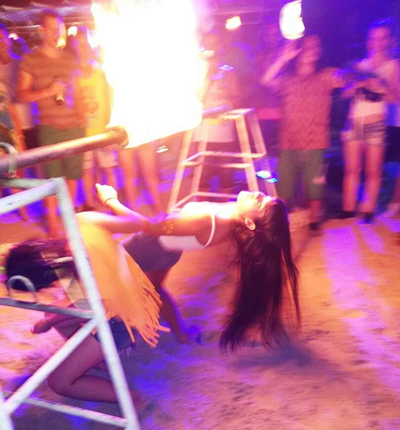 หลังจากแยกจากหนุ่มเยอรมัน ก็ตรงดิ่งมาดูเขากระโดดเชือกไฟน่าสนุกมาก