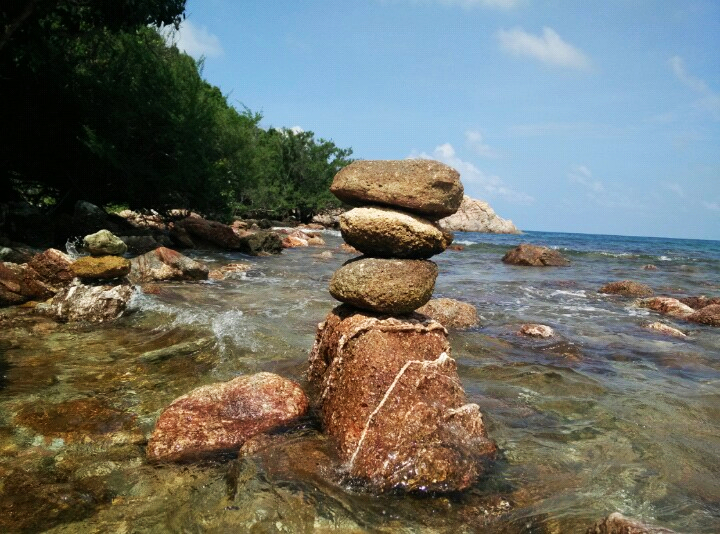 พอเดินข้ามไปเกาะม้า ลักษณะจะเป็นหินขรุขระ เวลาเดินต้องระวังเศษหินกับแก้วจะบาดเท้าเอา