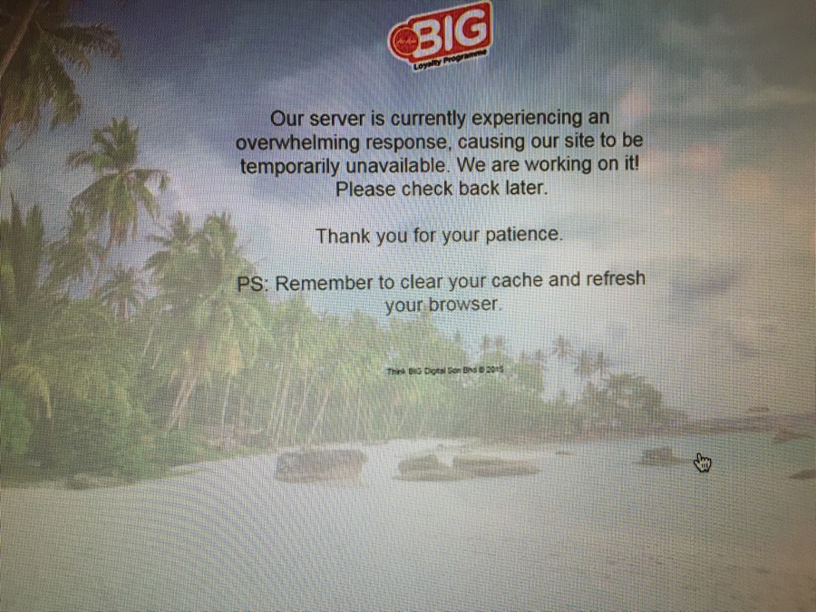 ช่วงนี้มีโปรของแอร์เอเชียสำหรับผู้ที่ถือบัตรเครดิตแอร์เอเชีย ธนาคารกรุงเทพ ที่สามารถนำคะแนน big point แลกเที่ยวบินได้ ผมก็ทำการจองปกติ กทม-ชม 3 คน รวม 3000 point แต่พอถึงหน้าชำระเงิน หน้าเว็บดัน error