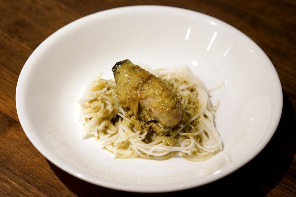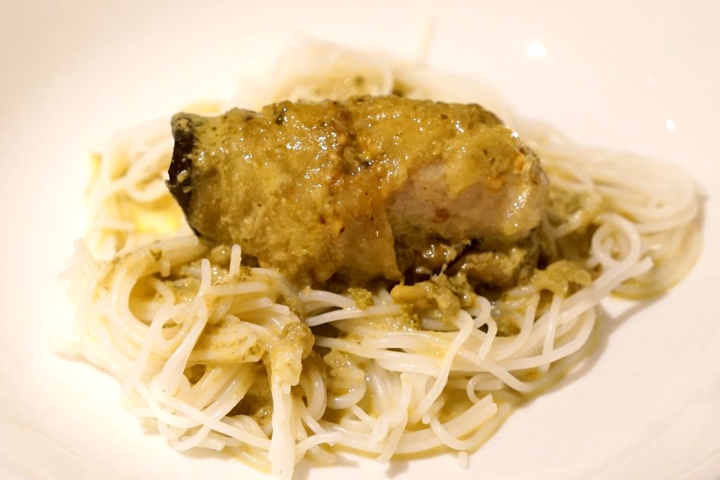 เนื้อปลากรายเหนียวหนึบ มะเขือม่วงรสหวาน รสกลมกลืนกับแกงเขียวหวานกะทิ